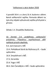 3. Velikonoce a akce duben 2026